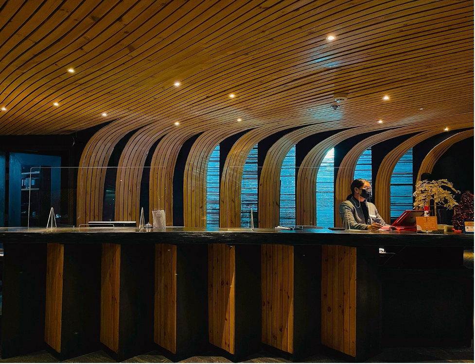 From the outside, with the upper floors appearing at odd angles from the lower floors, it cleverly plays with symmetry and what conventional Baguio accommodations offer. Its dark exterior is a poetic display of hard candy with a surprise centre. When you get inside, you start to see bright, warm colors and well-chosen fixtures like Hagabi. The wooden slats serving as a passive cooling alternative would give you the vibe of a modern Cordilleran home.