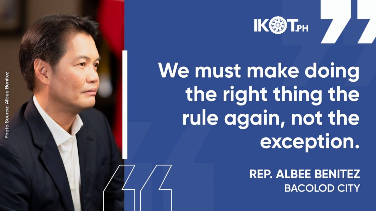 Bacolod lone district Rep. Albee Benitez believes that ending corruption in the country requires regaining the people’s sense of righteousness, which he said has been eroded by the normalization of corrupt practices.