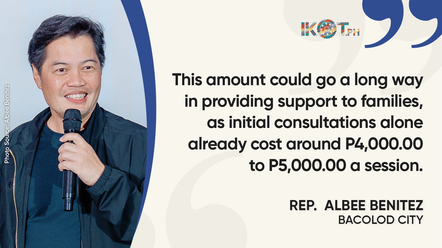 The measure would also provide other services, including free developmental assessment for all Filipino children until the age of five; free occupational, speech, and behavioral therapy in hospitals of the Department of Health; and free medicines for POS diagnosed with Level 3 Autism.