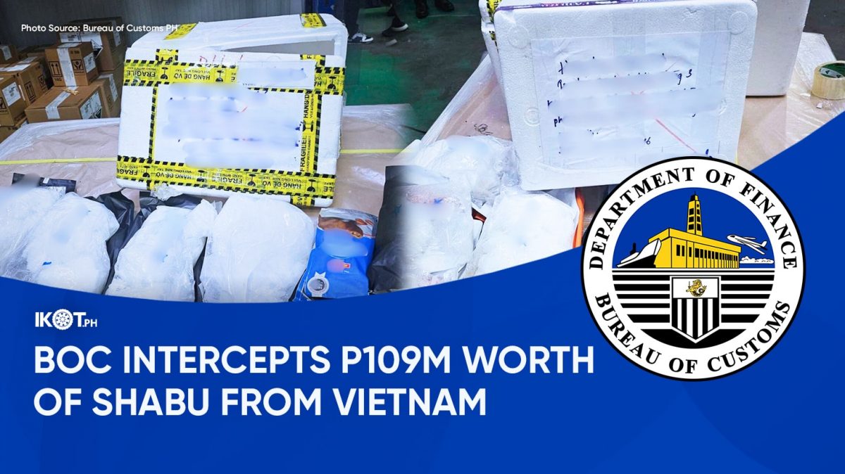The Bureau of Customs – Ninoy Aquino International Airport (BOC-NAIA) intercepted shipments containing 16,150 grams of methamphetamine hydrochloride, locally known as shabu, with an estimated standard value of ₱109,820,000, at the Paircargo Warehouse, Pasay City.