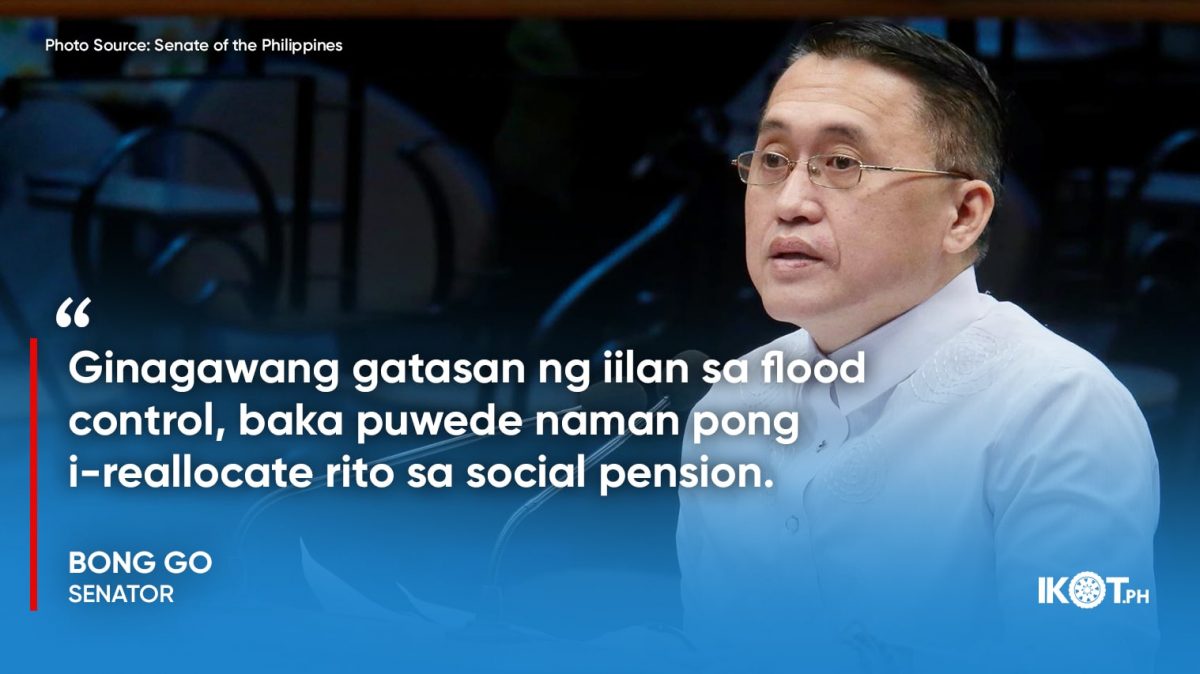 Senator Bong Go called on the national government to reallocate a portion of its flood control budget to settle the unpaid social pensions of qualified yet waitlisted indigent senior citizens across the country.