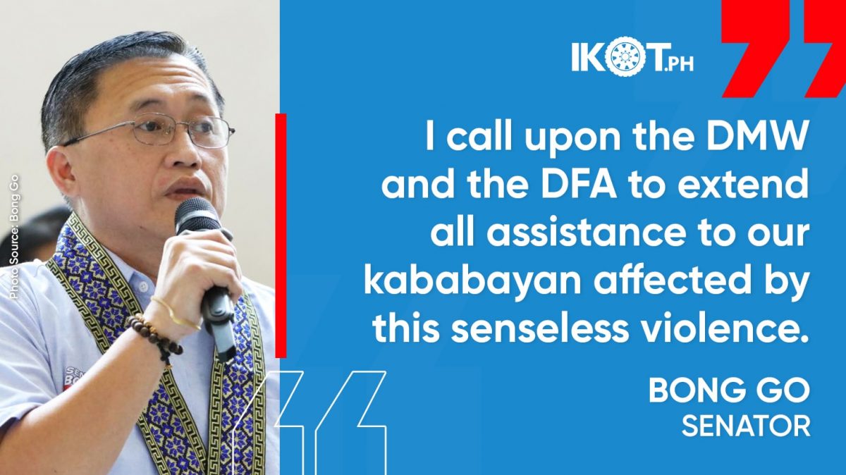 “As Vice Chair of the Senate Committee on Migrant Workers and member of the Senate Committee on Foreign Relations, I call upon the Department of Migrant Workers and the Department of Foreign Affairs to extend all assistance to our kababayan affected by this senseless violence,” Go concluded.