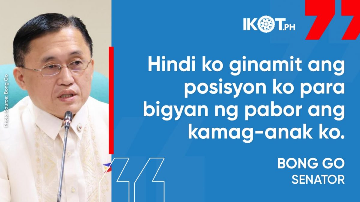 “Hindi ko ginamit ang posisyon ko para bigyan ng pabor ang kamag-anak ko. Wala akong kinalaman sa negosyo nila, at hindi rin ako nakinabang,” Go said.