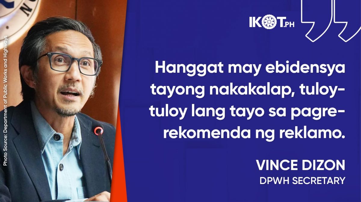 Hanggat may ebidensya tayong nakakalap, tuloy-tuloy lang tayo sa pagrerekomenda ng reklamo,” the public works chief added.