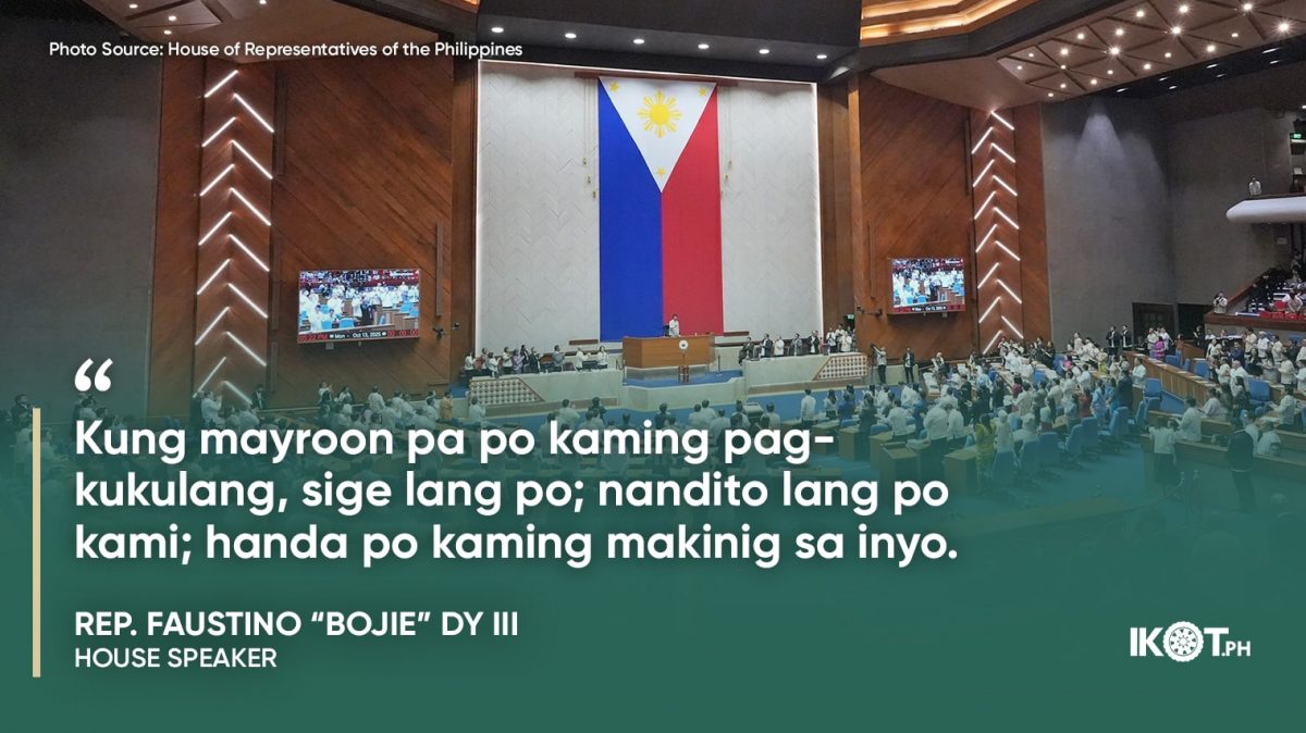 “Kung mayroon pa po kaming pagkukulang, sige lang po; nandito lang po kami; handa po kaming makinig sa inyo. We will never stop listening. Palaging bukas ang Kongreso para sa inyo.”