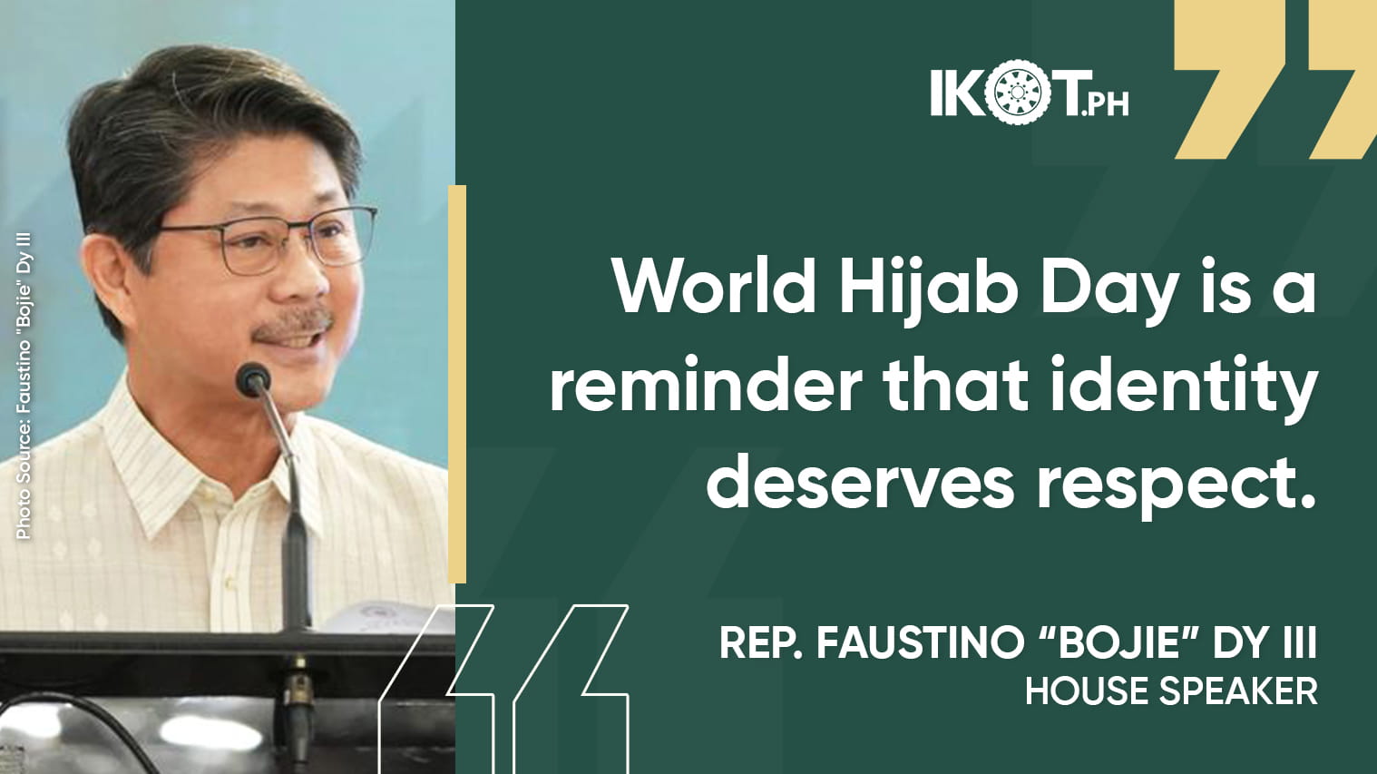In a speech, Dy said World Hijab Day reminds Filipinos that identity and faith deserve respect in a country shaped by diversity and mutual understanding.