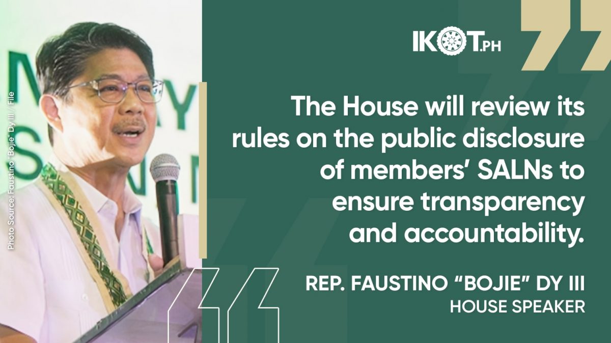 House Speaker Faustino “Bojie” Dy III has reconstituted the Statement of Assets, Liabilities, and Net Worth (SALN) Review and Compliance Committee of the House of Representatives, pursuant to the provisions of Republic Act No. 6713 and consistent with the Speaker’s earlier statements regarding revisiting the House’s guidelines on the release of SALNs. The longtime public servant also released his SALN to the media on Wednesday, following earlier commitments to make his SALN public.