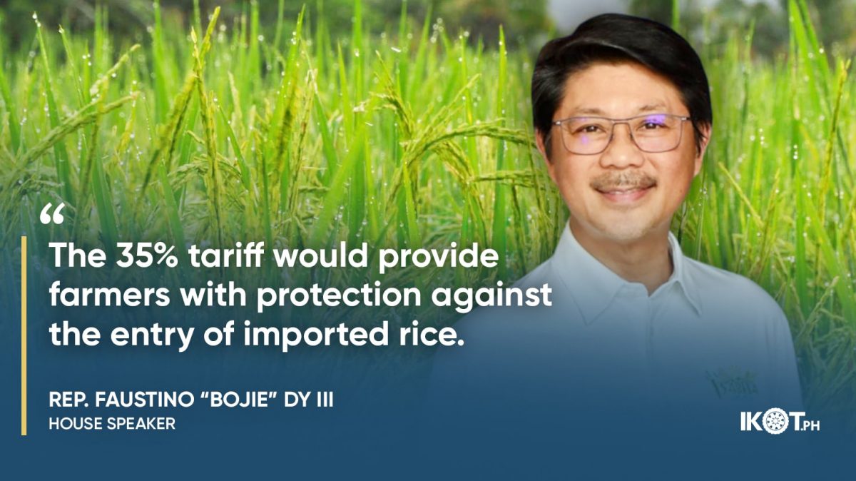 Speaker Faustino “Bojie” Dy III on Monday appealed to the government’s economic managers to restore the 35% tariff on imported rice to protect Filipino farmers and strengthen the country’s rice industry.