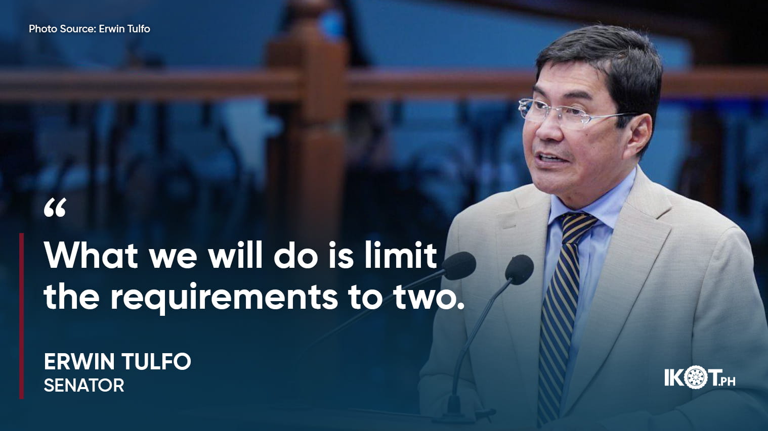 “What we will do is limit the requirements to two. We will ensure that unnecessary requirements, such as barangay indigency forms and marriage contracts, are removed. If you need medical assistance, for example, you will only need to provide a valid ID and a hospital bill,” the legislator said.