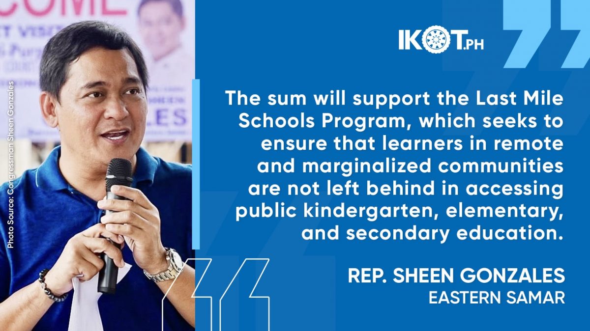 “The sum will support the Last Mile Schools Program, which seeks to ensure that learners in remote and marginalized communities are not left behind in accessing public kindergarten, elementary, and secondary education,” said Gonzales, noting that his home province, Eastern Samar, has at least 41 barangays classified as GIDCAs.
