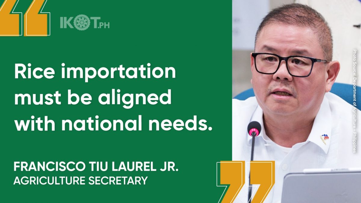 The agriculture chief stressed that rice importation must be aligned with national needs, revealing that as of the end of September, rice imports had already reached 3.5 million metric tons, far above the 2.7 million metric tons that should have been brought in by that point in the year.