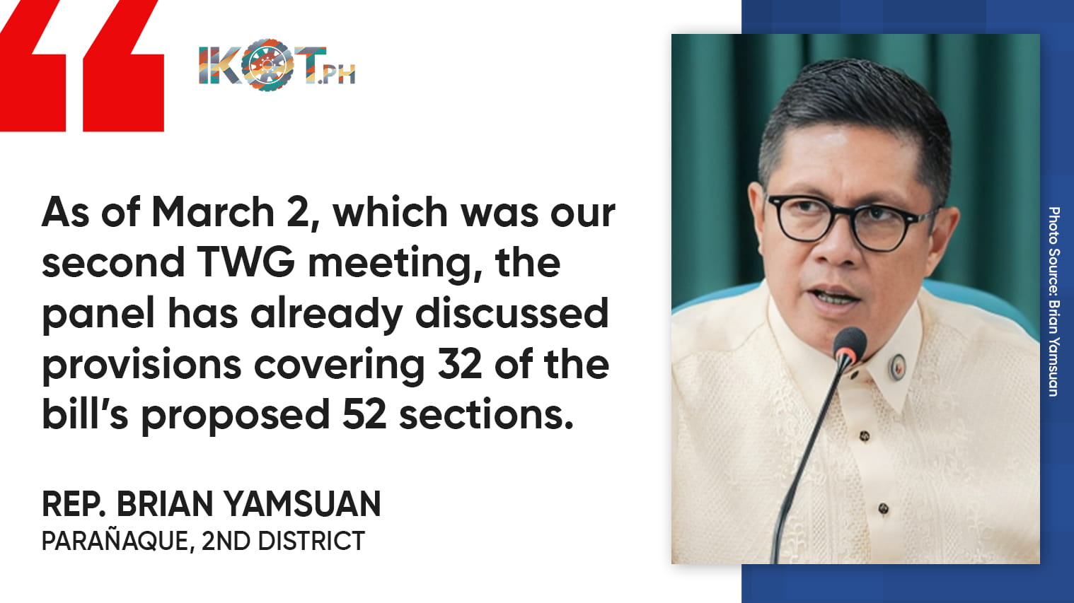 “We are optimistic that we can submit a committee report soon so that the House would have enough time to deliberate the substitute bill on the floor and have it approved on third and final reading before the sine die adjournment of the first regular session in June,” Yamsuan said.