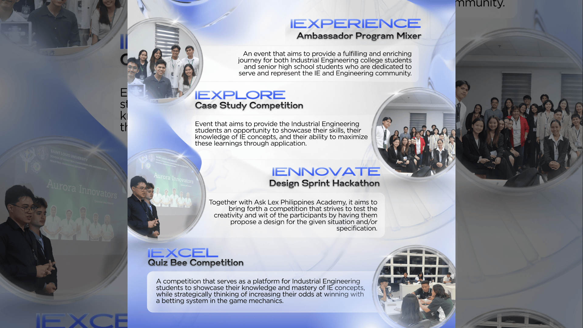 - The IExcel: Quiz Bee Competition tests participants’ knowledge of IE concepts, critical thinking, and problem solving skills with a strategic twist.