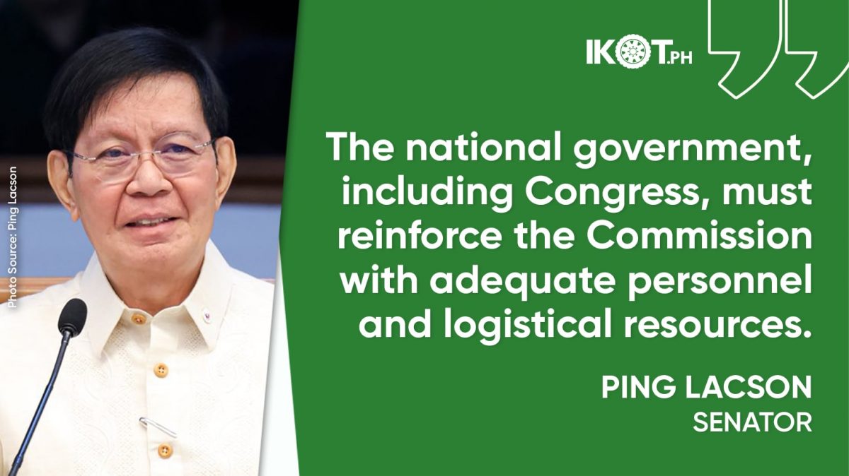 “Hence, the national government, including Congress, must reinforce the Commission with adequate personnel and logistical resources, even additional legal power and authority by way of legislation so they can accomplish their assigned tasks,” the seasoned lawmaker added.