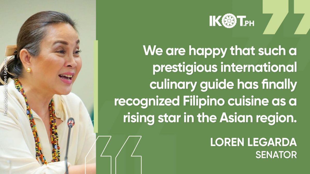 Senator Loren Legarda filed a resolution commending the Philippine restaurants, chefs, and industry professionals recognized in the inaugural Michelin Guide Philippines 2026.