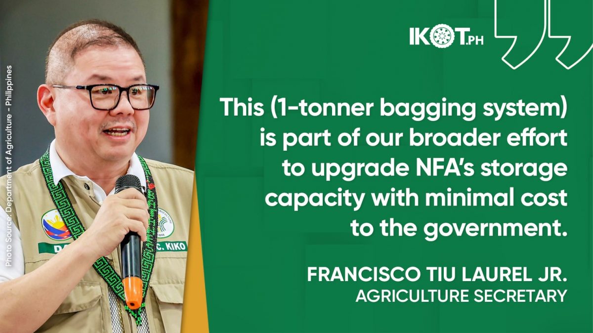 The National Food Authority (NFA) started the pilot testing a 1-tonner bagging system for palay, aiming to reduce storage costs, increase warehousing capacity, and improve grain quality preservation.