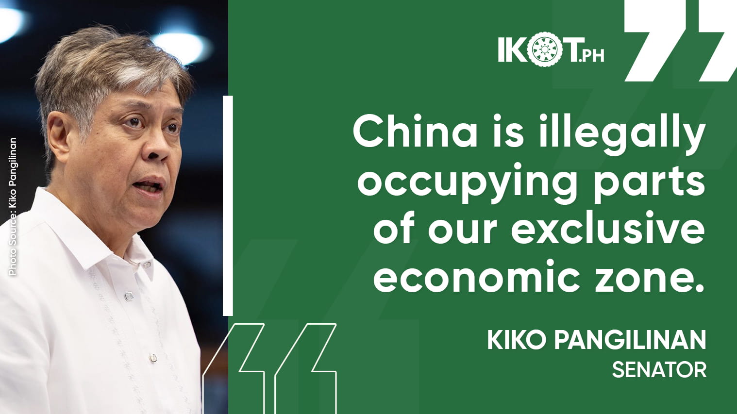 “All these should suffice, Mr. President, for us to assert that China is illegally occupying parts of our exclusive economic zone and is claiming likewise 150,000 square kilometers of our continental shelf and 381,000 square kilometers of our EEZ,” the senator added.