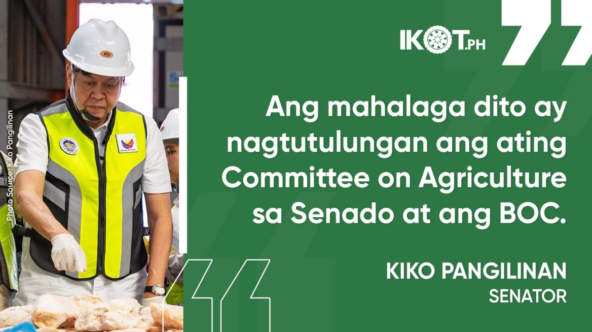“Ang mahalaga dito ay nagtutulungan ang ating Committee on Agriculture sa Senado at ang BOC. Interestingly enough, ako ay naging chairman ng Senate Committee on Agriculture ng end of July at si Commissioner Ariel Nepomuceno naman ay naging commissioner (ng BOC) beginning July,” Pangilinan said.
