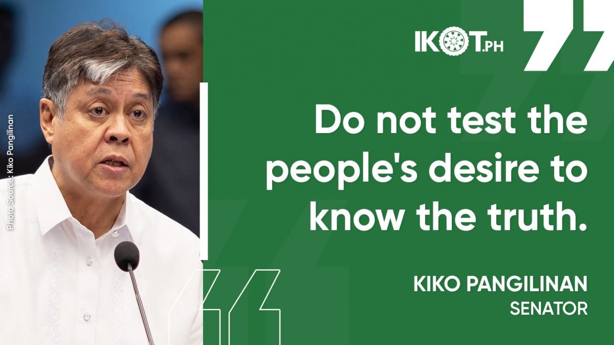 Finally, Pangilinan called on ICI to open the hearings to the public, warning: “Do not test the people’s desire to know the truth.”