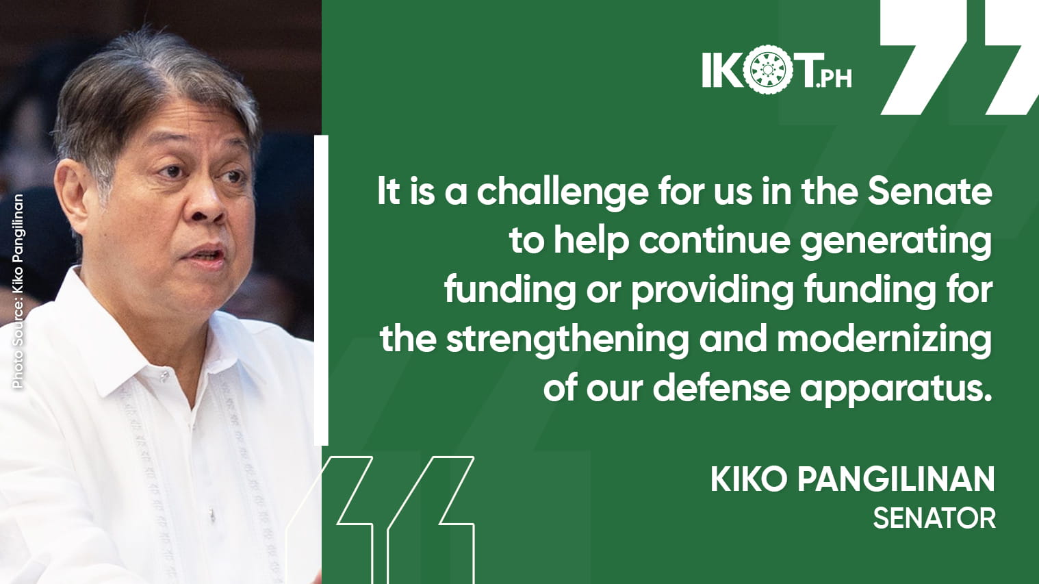While there is existing legislation to defend the Philippines’ rights to the resource-rich West Philippine Sea, Senator Kiko Pangilinan underscored the need for continuous budgetary support for the country’s armed forces in the face of China’s increasingly aggressive actions in the region.