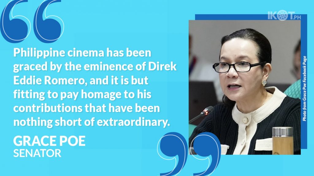 Senator Grace Poe is persuading young Filipinos to include classic films by the late National Artist Eddie Romero in their movie to-watch list to better understand Philippine cinema and society. Poe made the call as she paid tribute to the National Artist for Film and Broadcast on his 100th birth anniversary on July 7. The … Continue reading POE HONORS NAT’L ARTIST FOR FILM EDDIE ROMERO