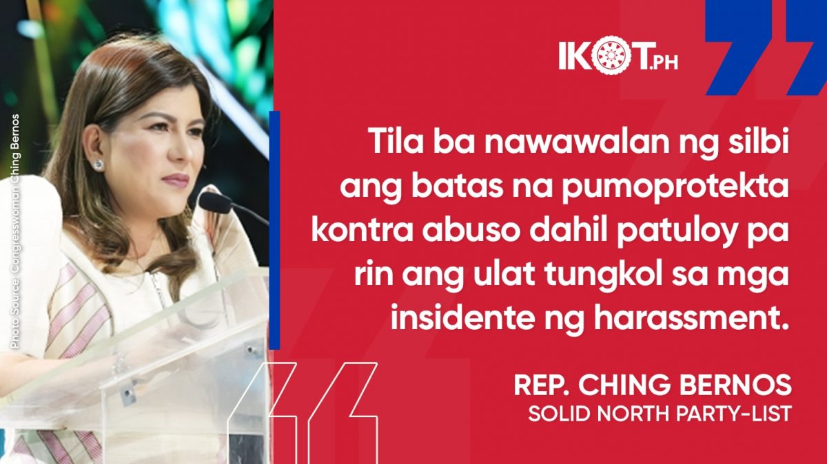 As more cases of sexual harassment are being reported in the country, Solid North Party-list Rep. Ching Bernos has called on Congress to amend the Safe Spaces Act to impose stiffer penalties against those who violate the law.