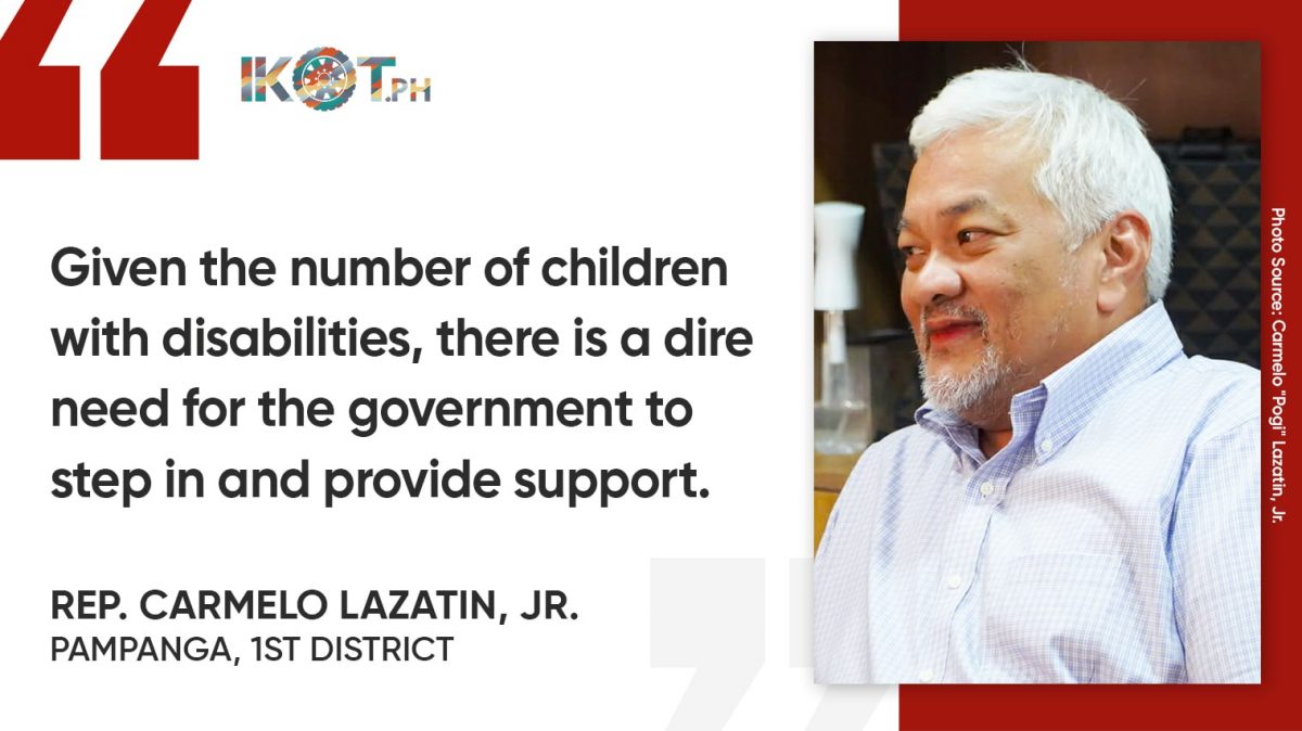 Pampanga First District Representative Carmelo “Pogi” Lazatin, Jr. filed House Bill No. 6504 granting tax deductions to qualified parents or legal guardians of Children with Special Needs (CSNs) and Youth with Special Needs (YSNs).