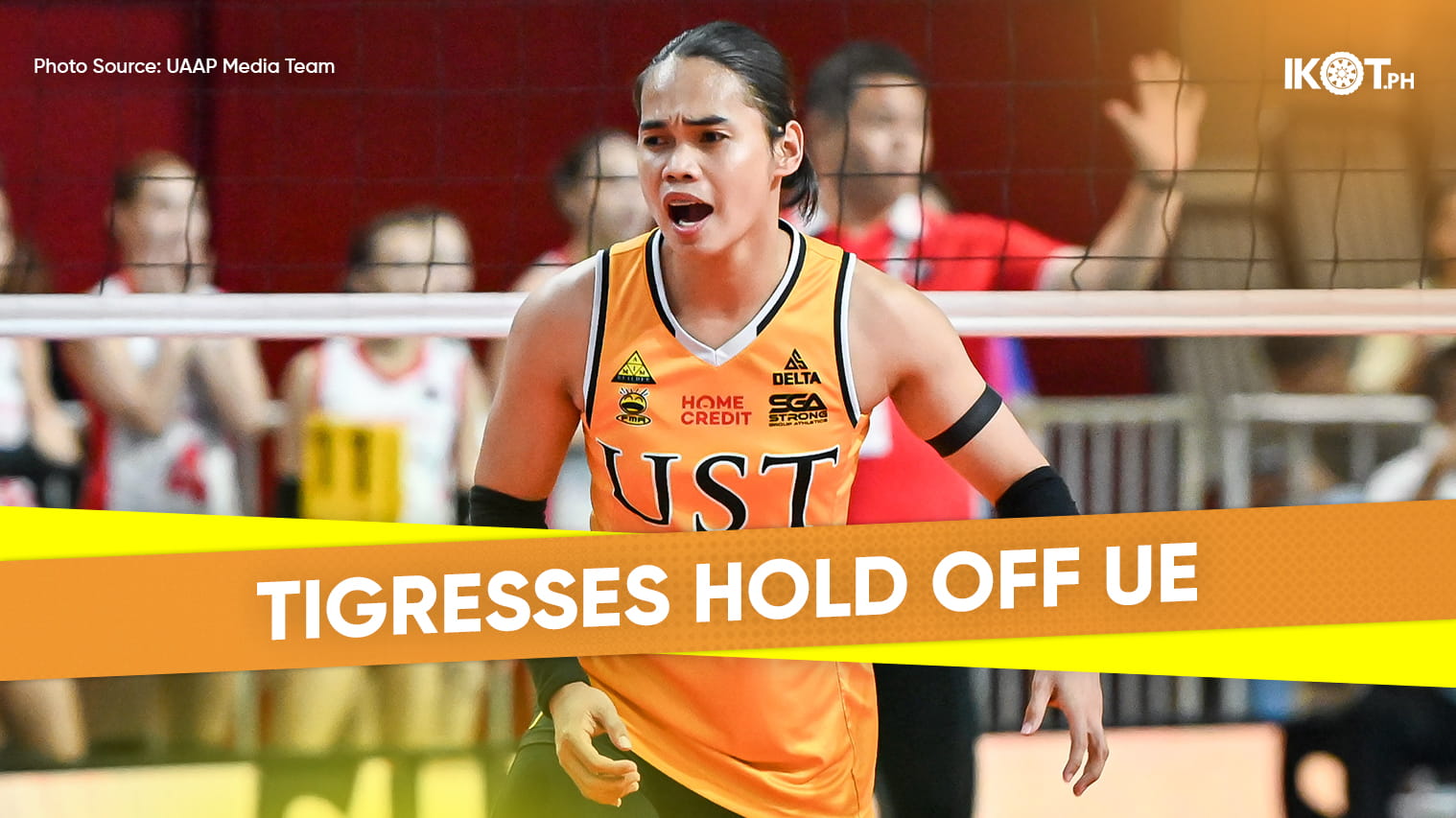 With their fifth win in six outings, the Golden Tigresses momentarily seized solo third place with a 7-4 win-loss record, pending the result of the clash between defending champions National University Lady Bulldogs (7-3) and the Adamson University Lady Falcons (6-4) later at 5 p.m.