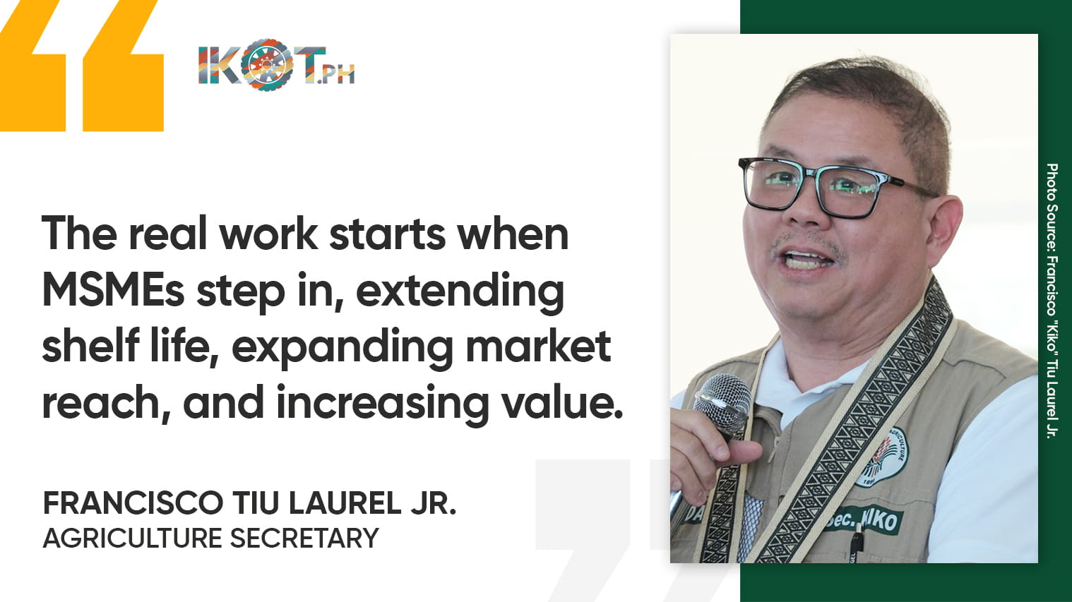 For the government, Tiu Laurel said, strengthening MSMEs forms part of a wider effort directed by President Ferdinand Marcos Jr. to shift agriculture away from subsistence toward value-added production.