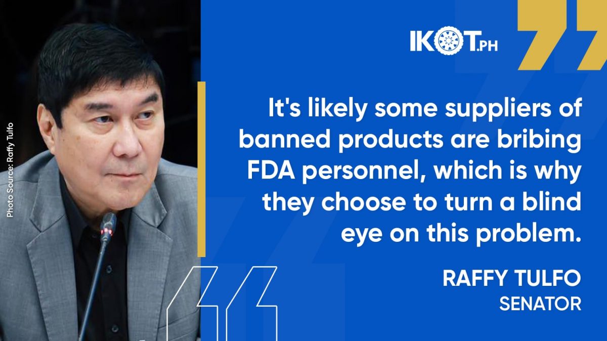 Tulfo even suggested that it’s likely some suppliers of banned products are bribing FDA personnel, which is why they choose to turn a blind eye on this problem.