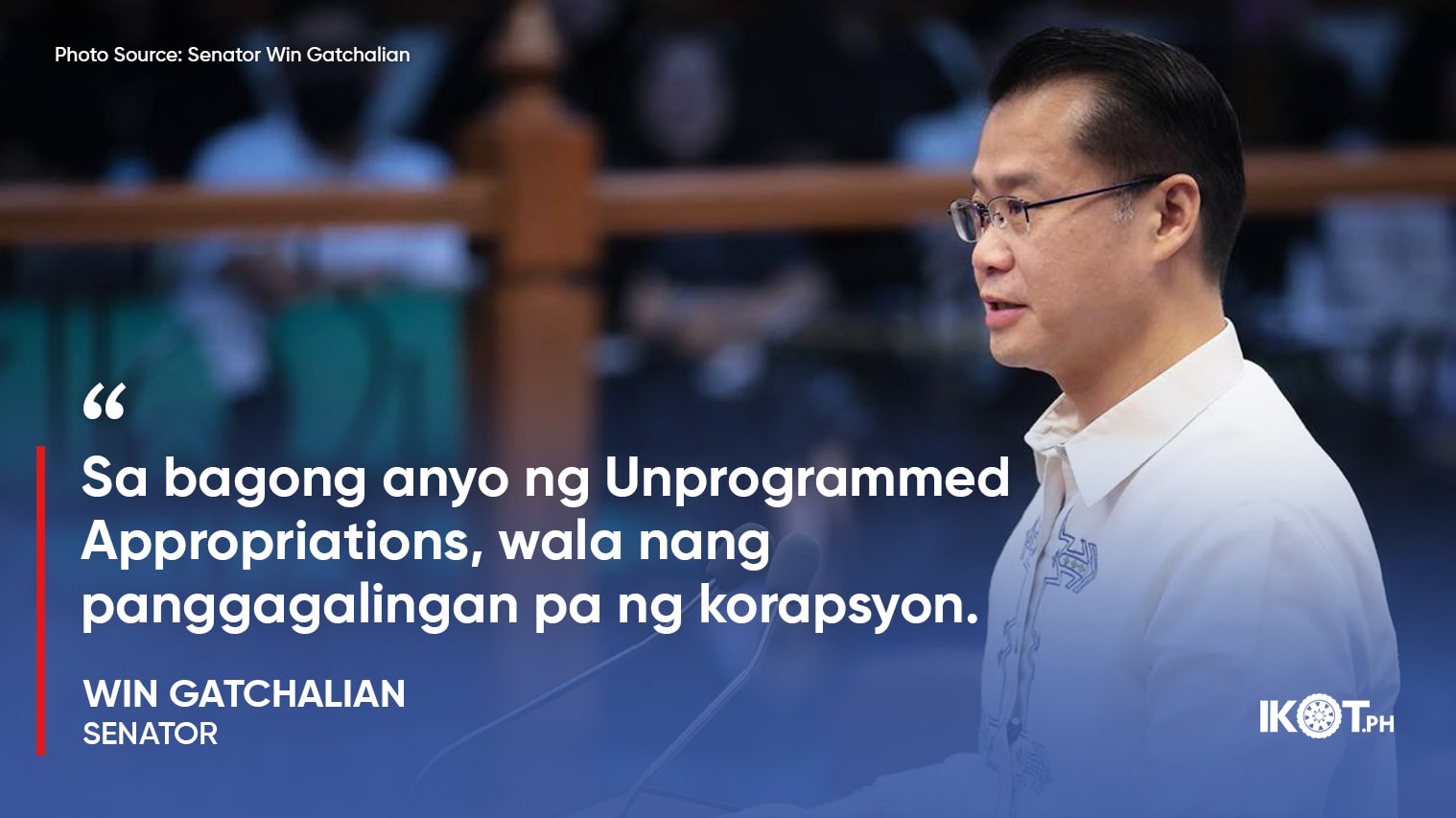 Senator Win Gatchalian emphasized that a corruption loophole previously lodged under Unprogrammed Appropriations (UA) has been eliminated in the proposed 2026 national budget, as recently approved by the Bicameral Conference Committee.