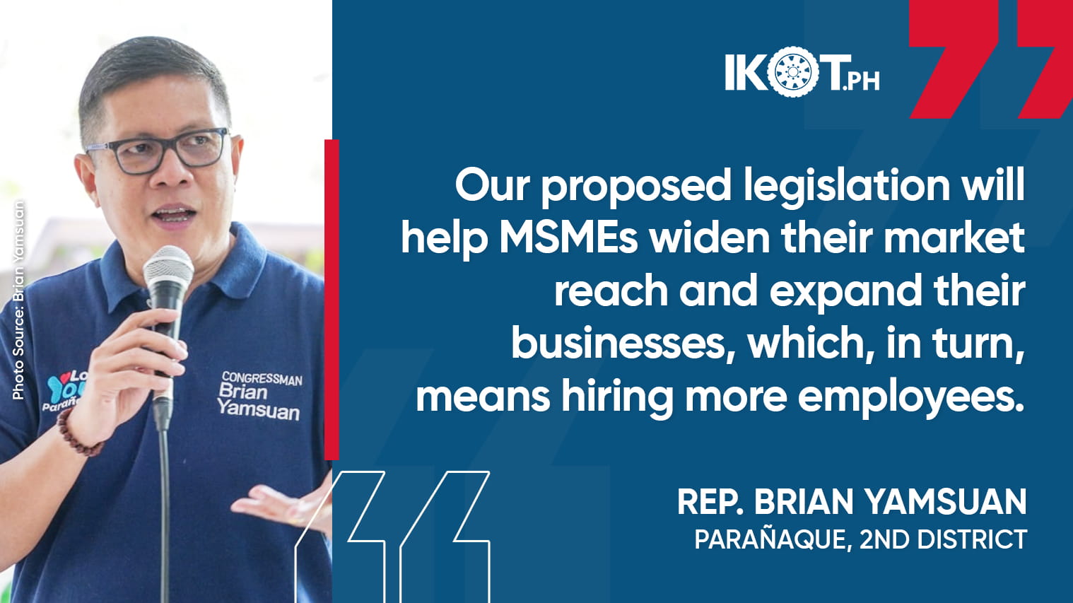 Parañaque 2nd District Representative Brian Raymund Yamsuan has urged Congress to swiftly pass a measure which aims to create more jobs and accelerate the growth of micro, small and medium enterprises (MSMEs) by expanding their access to domestic and global supply chains.